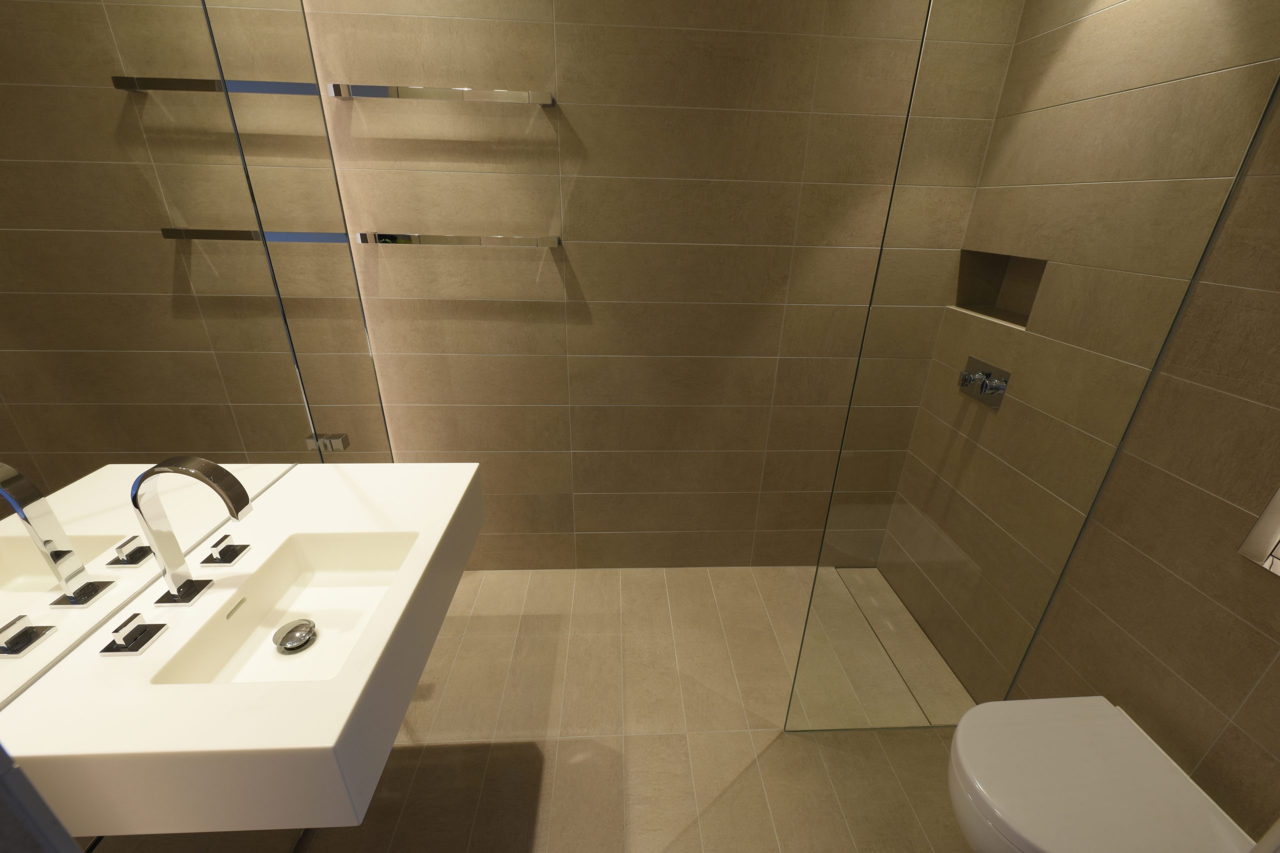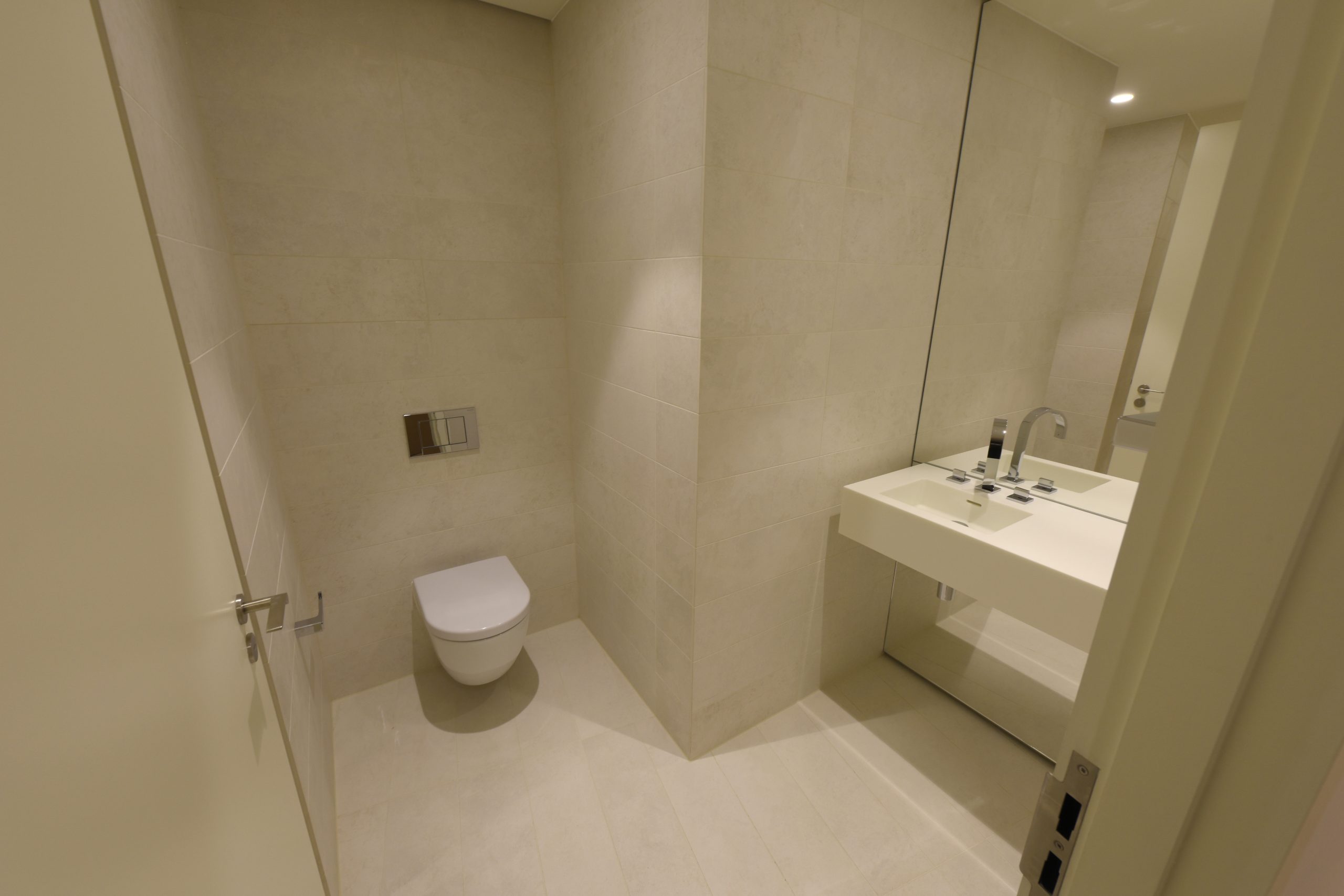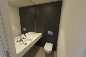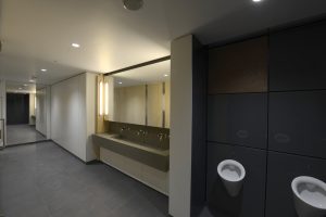 Our scope included the complete fit-out of washrooms in 2 cores over 8 floors. Works comprised all floor wall and ceiling finishes, Rudwall to cubicle, urinal and WHB walls, disabled toilets, cleaners’ cupboards, doorsets and vinyl to the cores. The design was developed further from the system used at 5 Broadgate with British Land.
